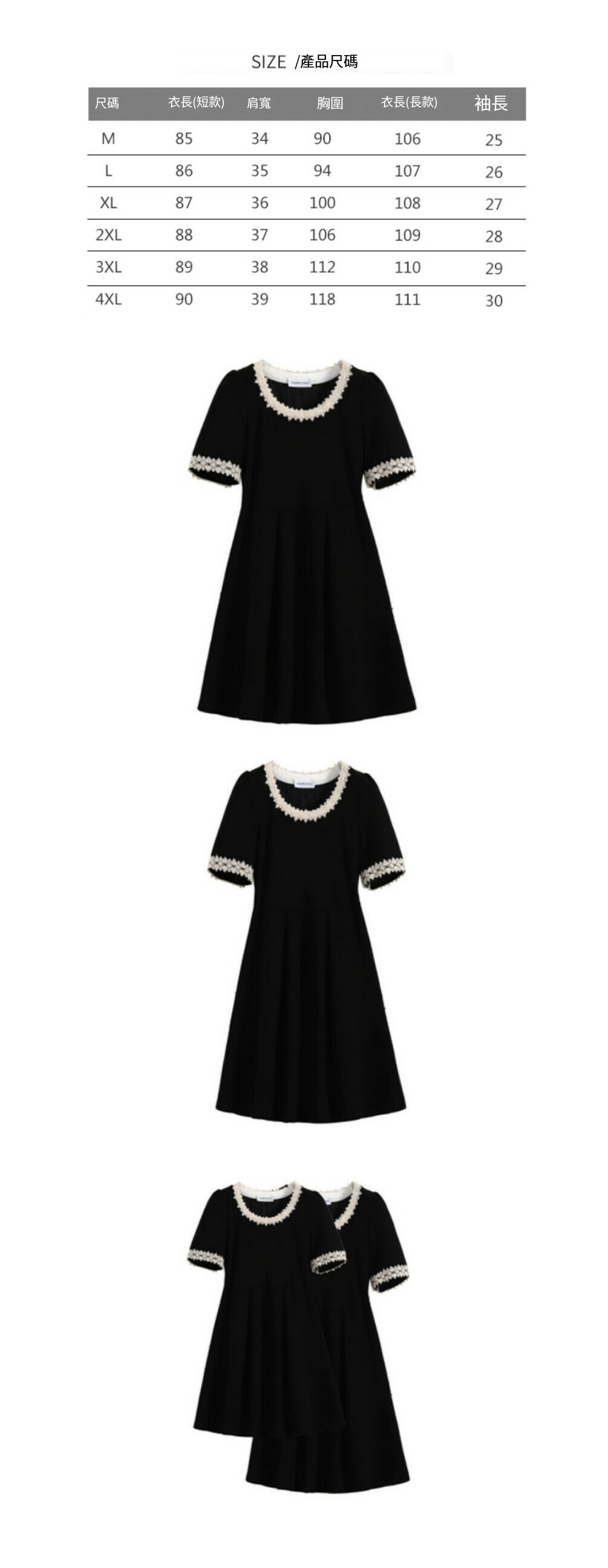熱賣釘珠連衣裙【黑色(短款)】【L-4XL碼】(下單後請聯絡客服確認發貨尺碼)