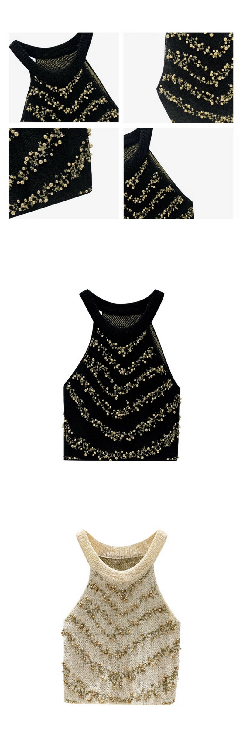 熱賣釘珠掛脖針織小背心(杏色 均碼)