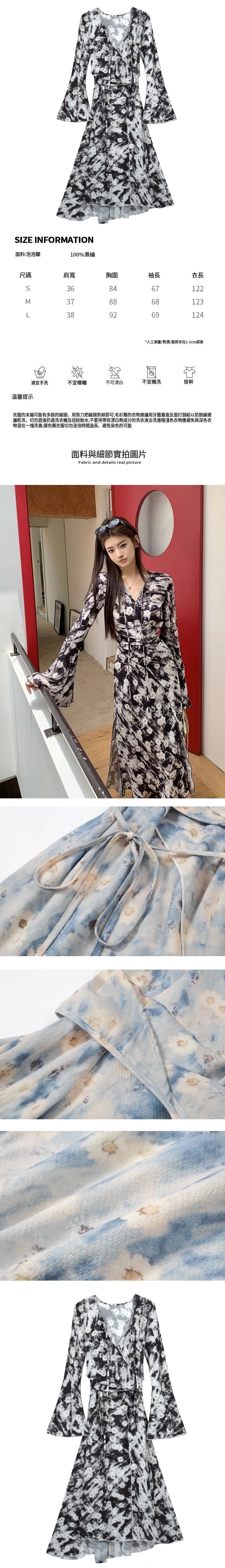 熱賣喇叭袖印花長裙(黑色碎花)(S-L碼)(下單後聯絡客服確認發貨尺碼)