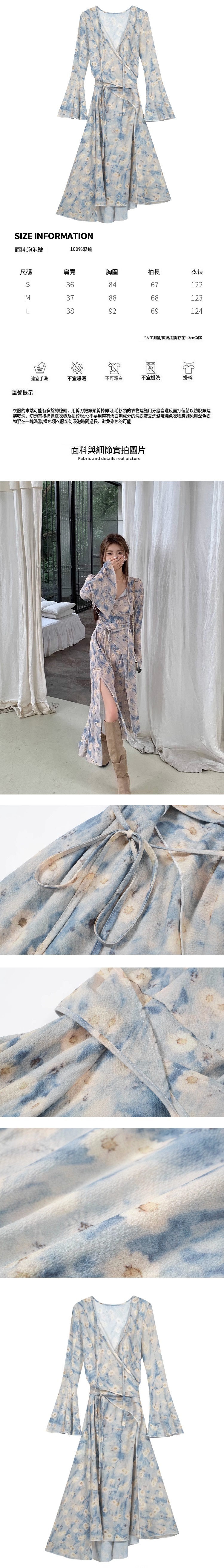 熱賣喇叭袖印花長裙(藍色碎花)(S-L碼)(下單後聯絡客服確認發貨尺碼)