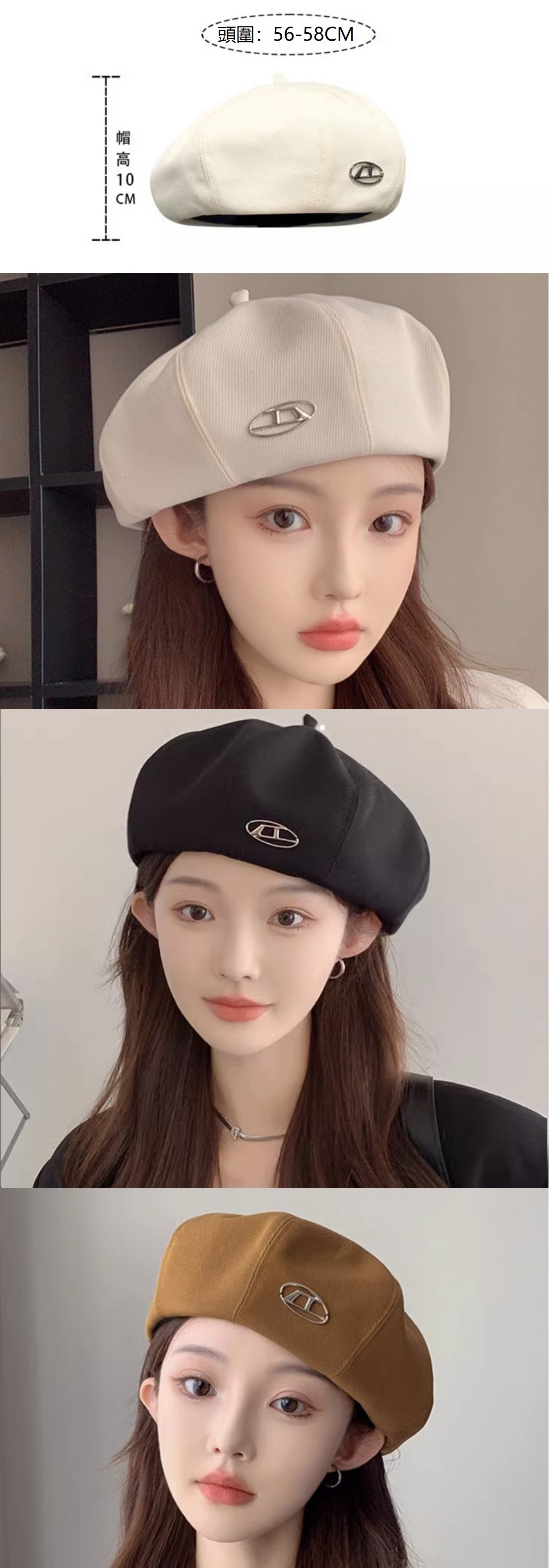 熱賣貝雷帽【E-528CHT黑色D字母貝雷帽】【可調節56-58cm】