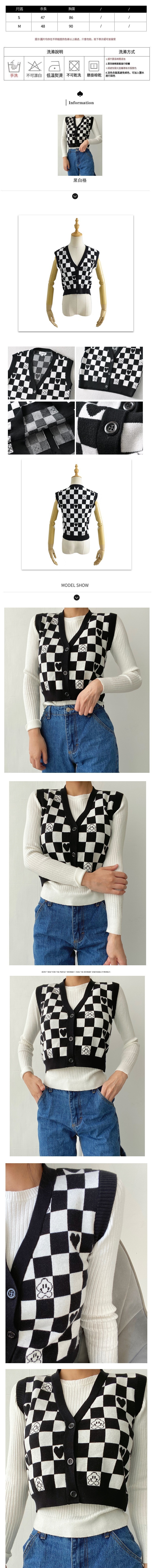 熱賣黑白格針織馬甲(杏色)(S/M碼)(下單後聯絡客服確認發貨尺碼)