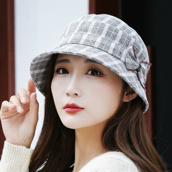 熱賣蝴蝶結圓頂貝雷帽女(卡其2)