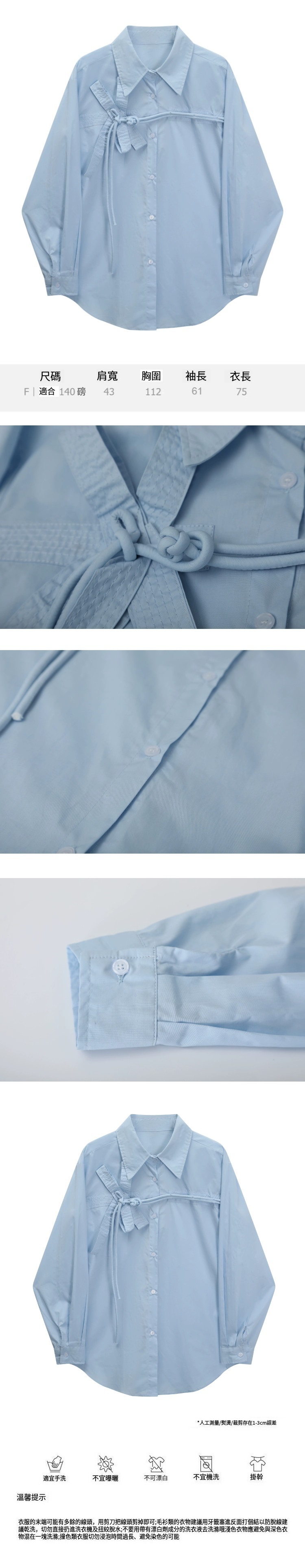 熱賣蝴蝶結盤扣襯衫(淺藍色)(均碼)