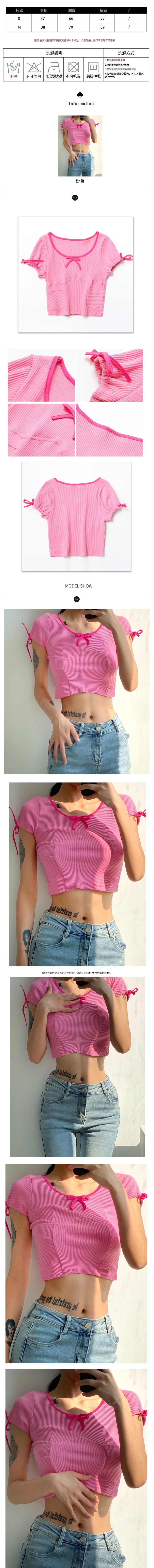 熱賣蝴蝶結抽繩繫帶短袖T卹(粉色)(S/M碼)(下單後聯絡客服確認發貨尺碼)