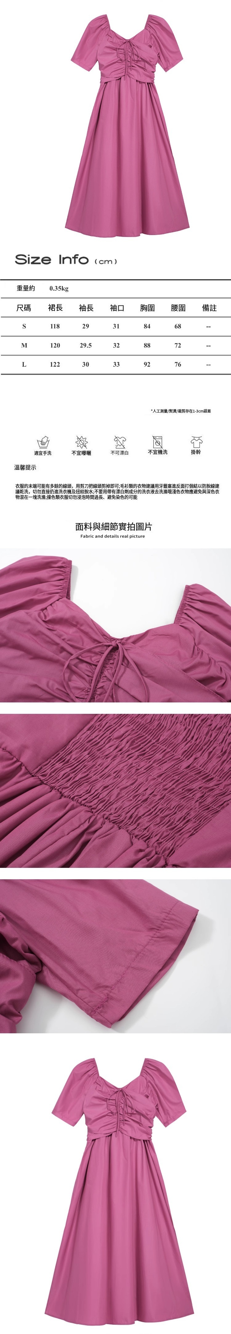 熱賣蝴蝶結泡泡袖氣質長裙(玫紅色)(S-L碼)(下單後聯絡客服確認發貨尺碼)