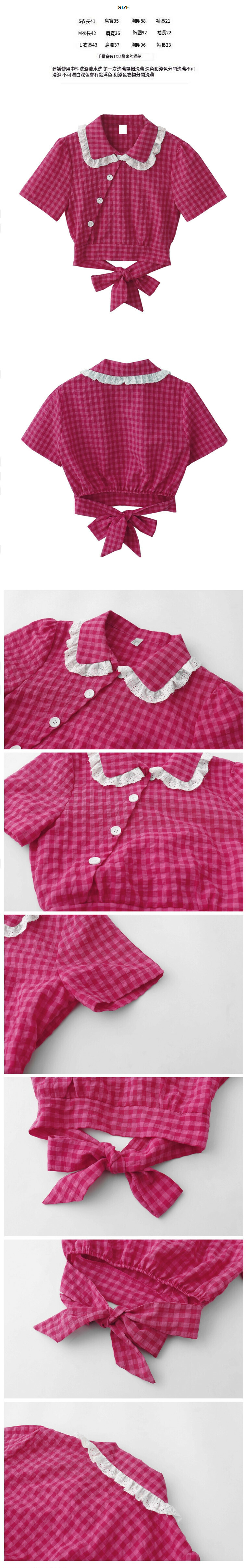 熱賣蝴蝶結系帶格子襯衫【火龍果紅色】【M碼-L碼】(下單後請聯絡客服確認發貨尺碼)
