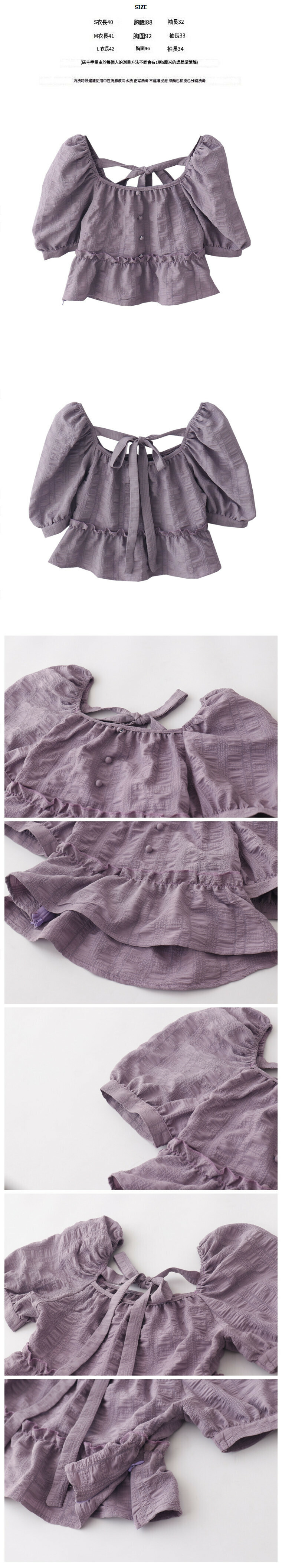 熱賣蝴蝶結綁帶短款襯衫【紫花】【L碼】