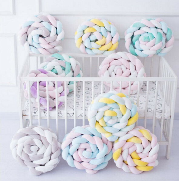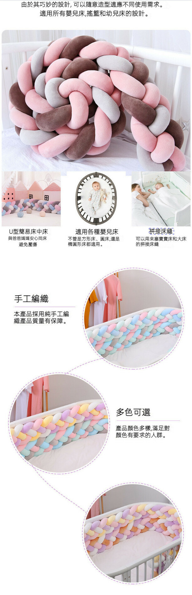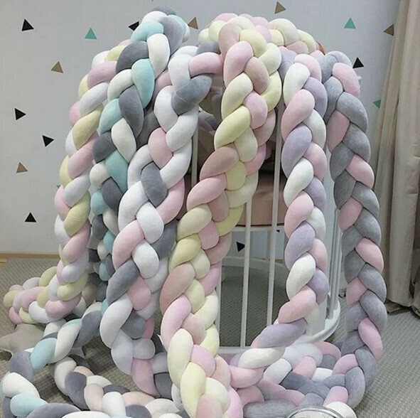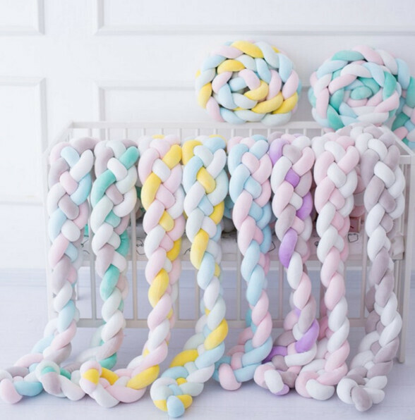 熱賣麻花辮防撞床圍 抱枕(NO3 白色+奶白+藍色+綠色)(200cm 四股)