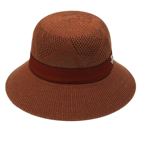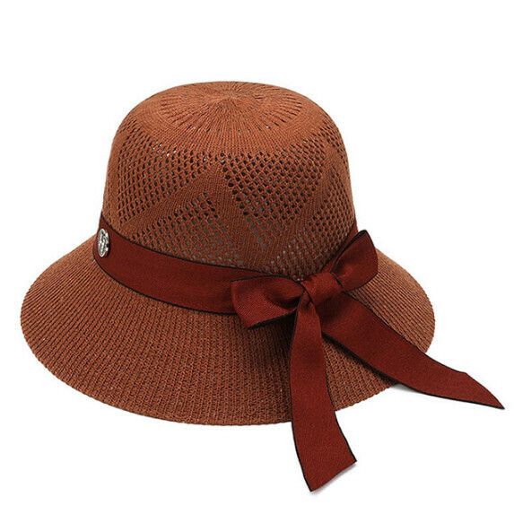 熱賣透氣遮陽防曬蝴蝶結編織大簷帽女(棕色)