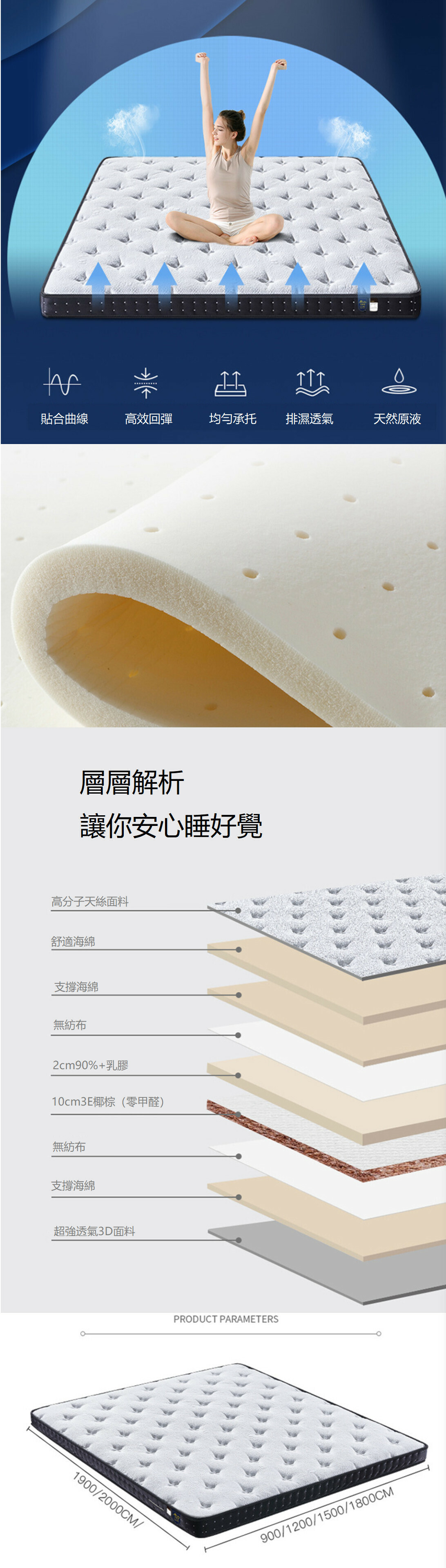 熱賣家用棕墊(9cm厚(5cm3E棕芯+1cm乳膠)900mm*1900mm)