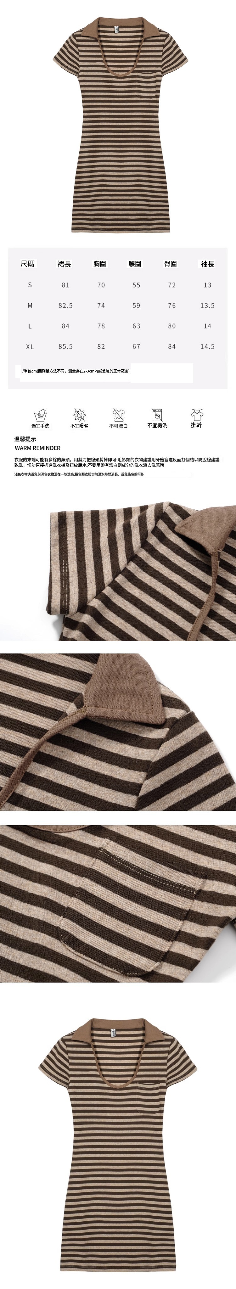 熱賣領咖啡色條紋連衣裙(咖啡色)(S-XL碼)(下單後聯絡客服確認發貨尺碼)