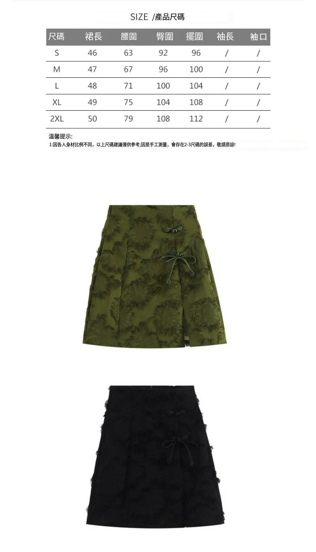 熱賣盤扣開叉半身裙【黑色】【S-2XL碼】(下單後請聯絡客服確認發貨尺碼)
