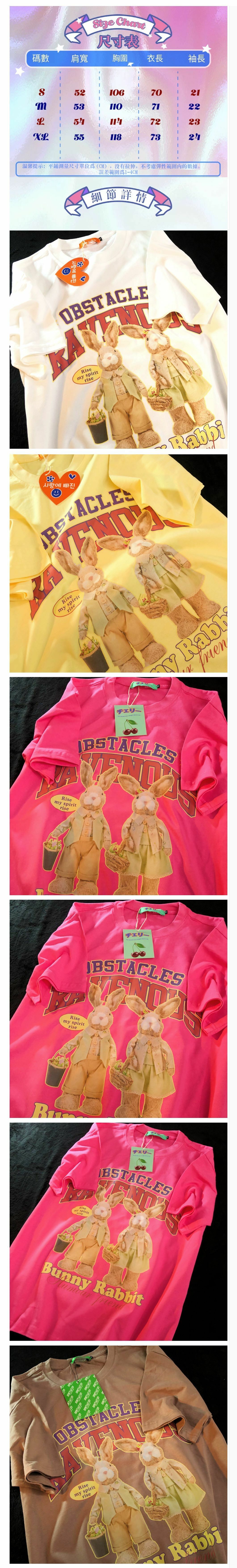 熱賣兔兔復古情侶短袖T恤【黃色】【S-XL碼】(下單後請聯絡客服確認發貨尺碼)