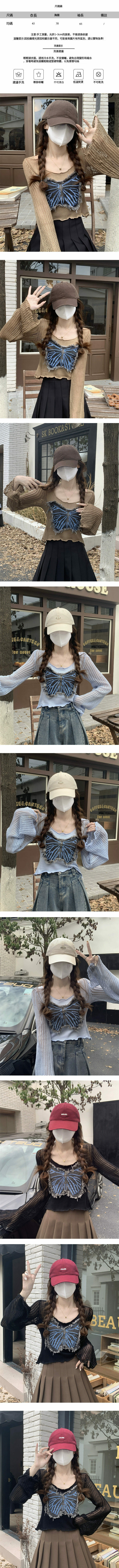 熱賣蝴蝶短款木耳邊喇叭袖針織衫(均碼)(卡其色)