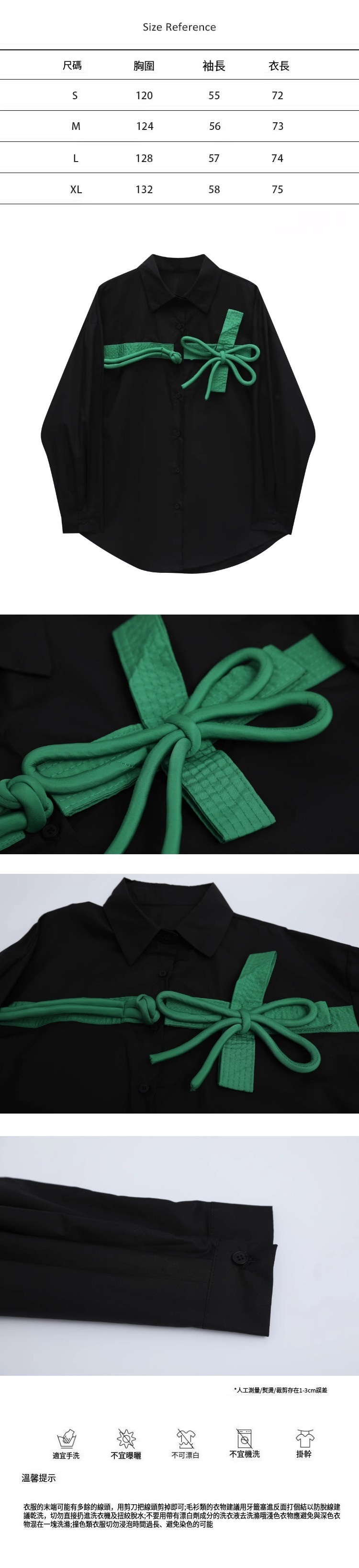 熱賣盤扣蝴蝶結寬鬆襯衫(黑色)(S-XL碼)(下單後聯絡客服確認發貨尺碼)