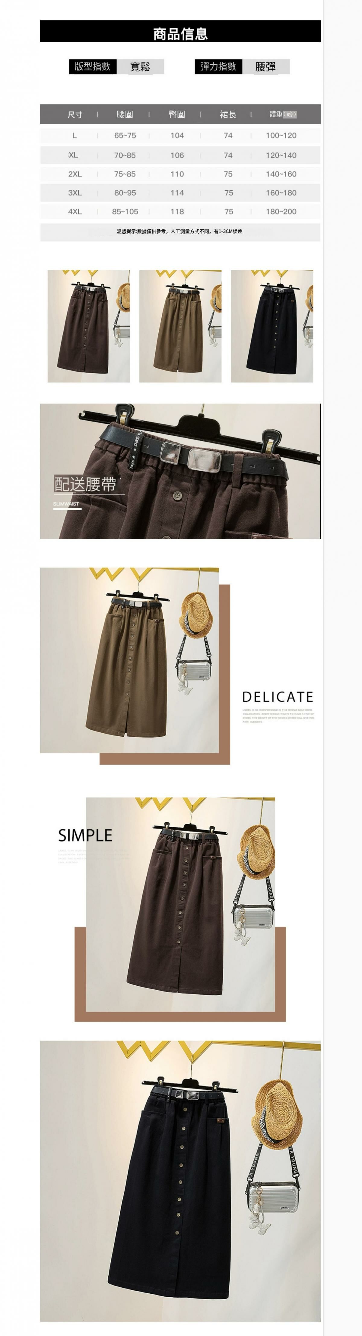 熱賣排扣開叉半身裙+腰帶【咖啡色】【M-4XL碼】(下單後請聯絡客服確認發貨尺碼)