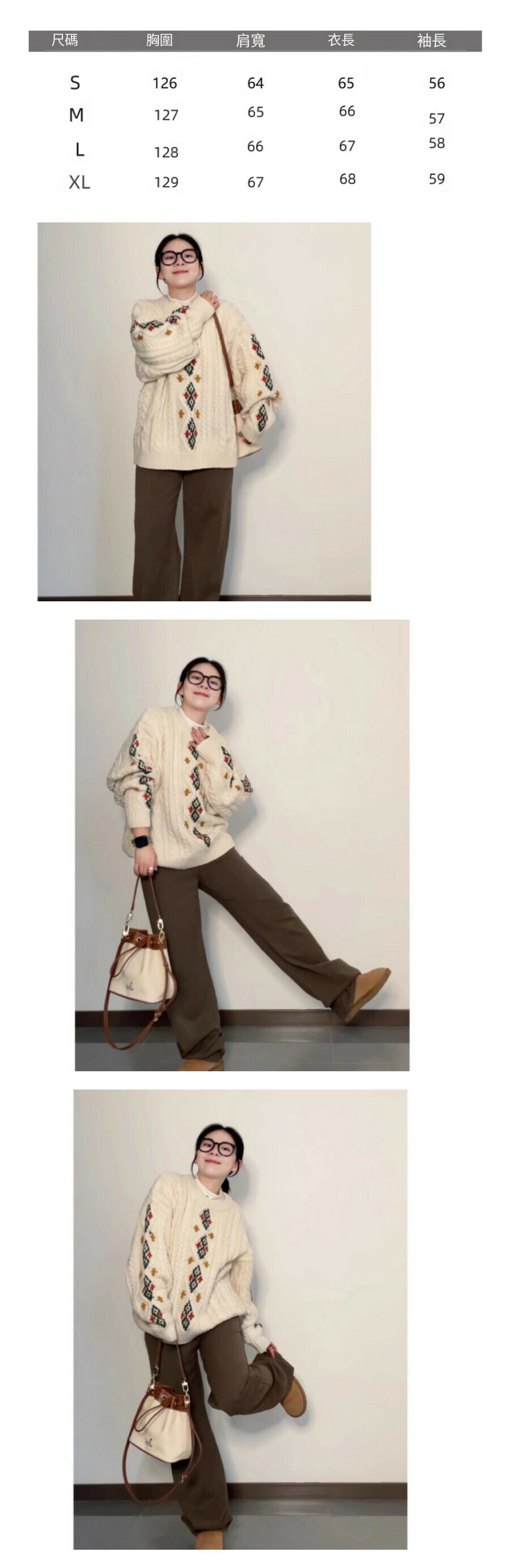 熱賣針絞花彩色毛衣上衣【奶白色】尺碼【S碼—XL碼】【下單後請聯絡客服確認發貨尺碼】