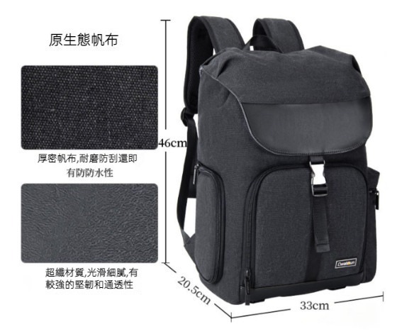 熱賣帆布雙肩大容量相機包(CW黑色)