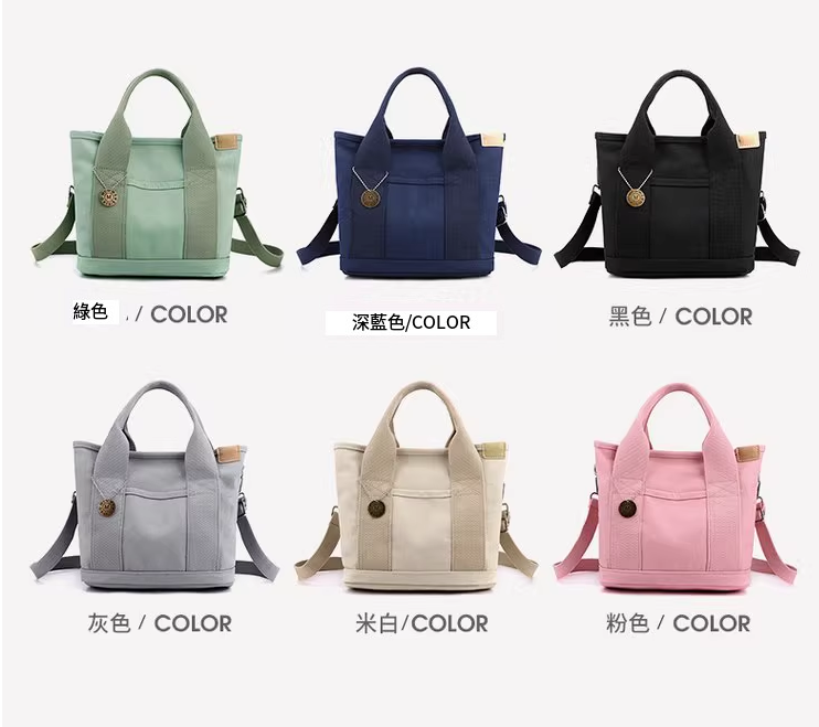 熱賣帆布包女大容量便當袋手提包 單肩包 媽咪包 斜孭袋【長肩帶 深藍色】