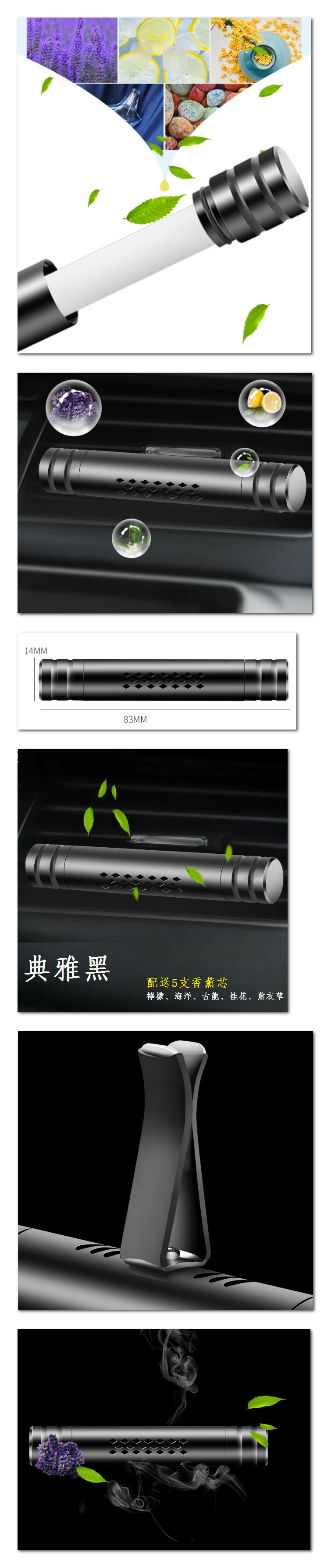 熱賣車載香水(合金香薰棒典雅黑【1只裝】+5根香薰芯)