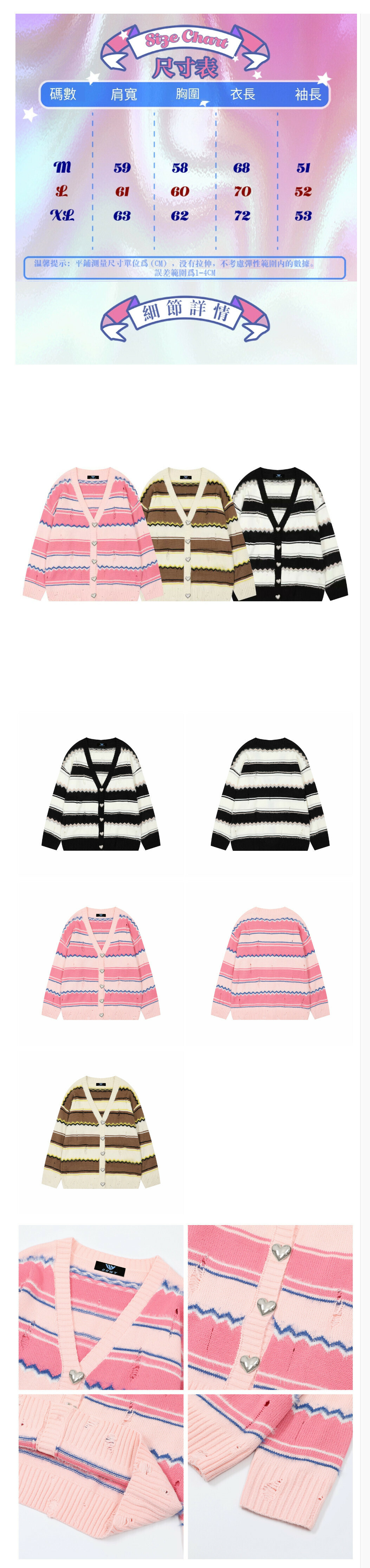 熱賣開衫多巴胺拼色毛衣【粉紅】【M-XL碼】(下單後請聯絡客服確認發貨尺碼)