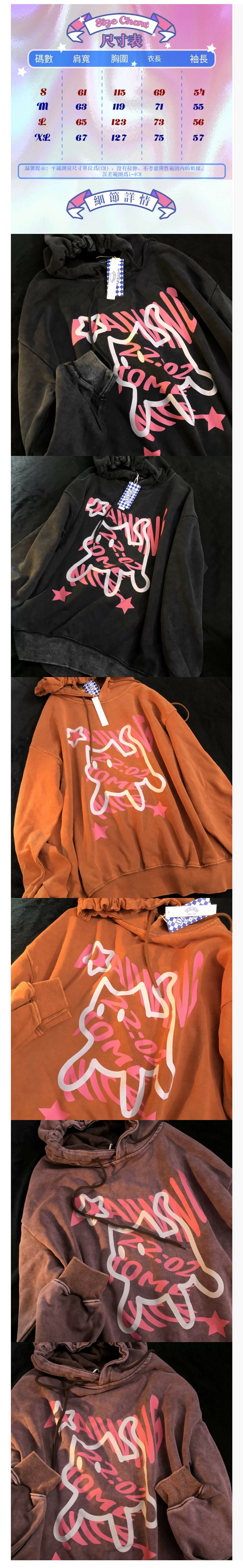 熱賣卡通連帽洗水衛衣【酒紅】【S-XL碼】(下單後請聯絡客服確認發貨尺碼)