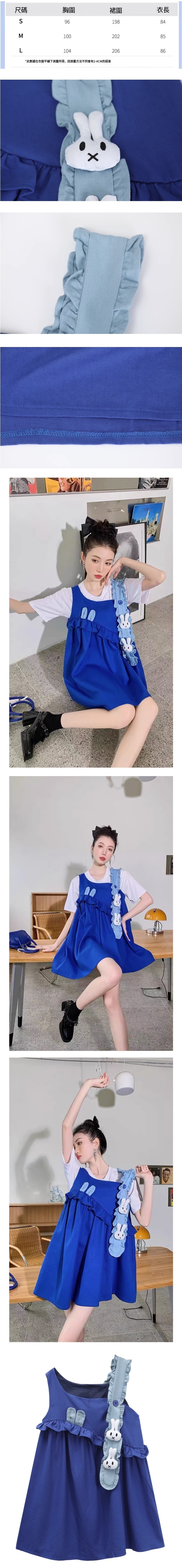 熱賣卡通扎花背帶連衣裙(藍色)(S-L碼)(下單後聯絡客服確認發貨尺碼)