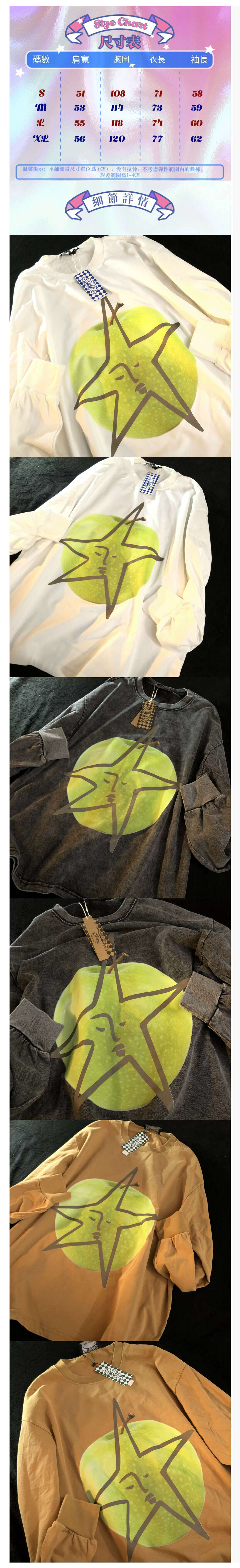 熱賣卡通洗水做舊長袖T恤【白色】【S-XL碼】(下單後請聯絡客服確認發貨尺碼)