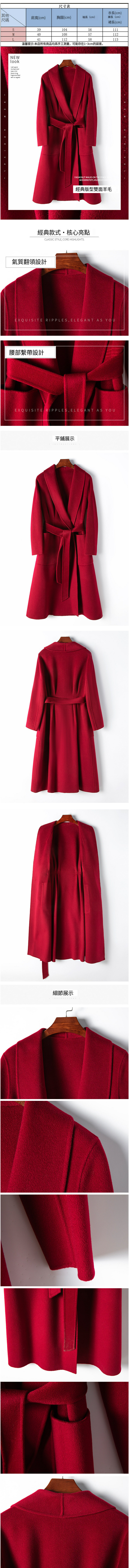 熱賣山羊絨系帶雙面呢大衣(S/M碼)(大紅色)(下單後聯絡客服確認發貨尺碼)