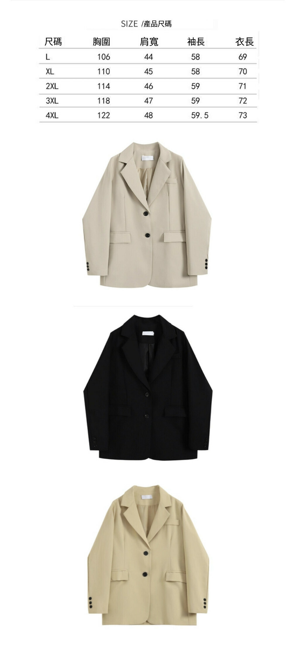 熱賣休閒寬鬆西服上衣【杏色】【M-4XL碼】(下單後請聯絡客服確認發貨尺碼)