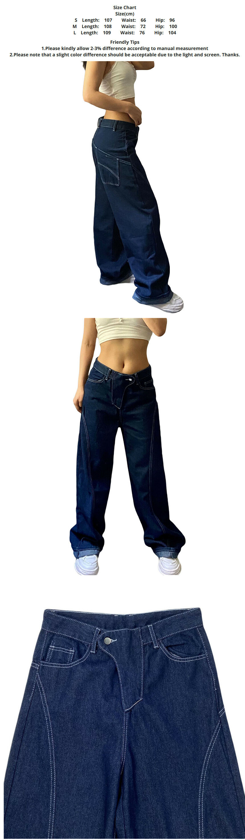 熱賣休閒街頭闊腿牛仔褲低腰寬鬆長褲有口袋(圖片色)(S-L碼)