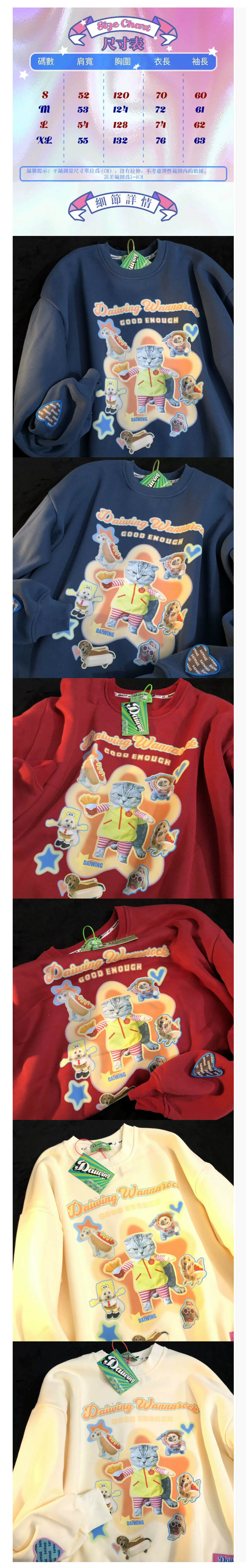 熱賣貓咪卡通寬鬆圓領衛衣【藏青色】【S-XL碼】(下單後請聯絡客服確認發貨尺碼)