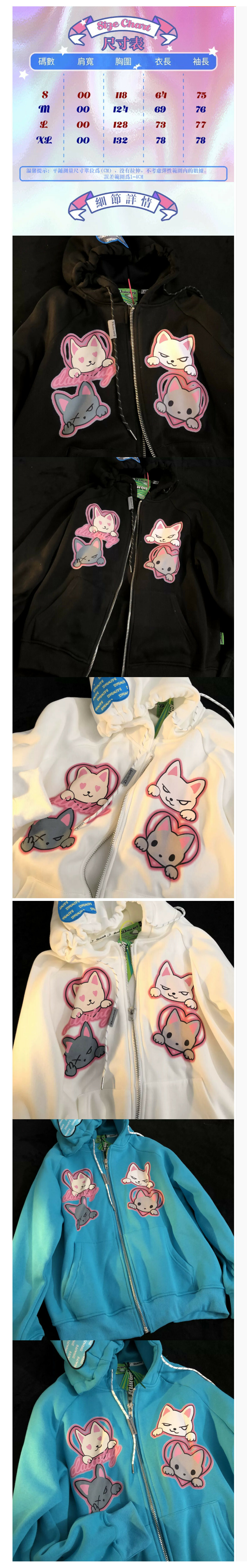 熱賣貓咪情侶拉鏈連帽衛衣【白色】【S-XL碼】(下單後請聯絡客服確認發貨尺碼)