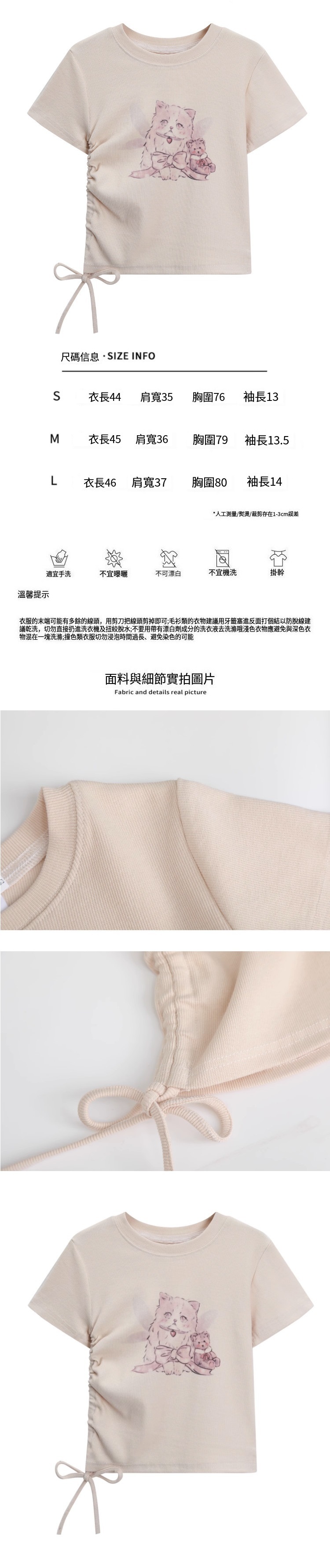 熱賣貓咪圖案短款抽繩T恤(奶咖色)(S-L碼)(下單後聯絡客服確認發貨尺碼)