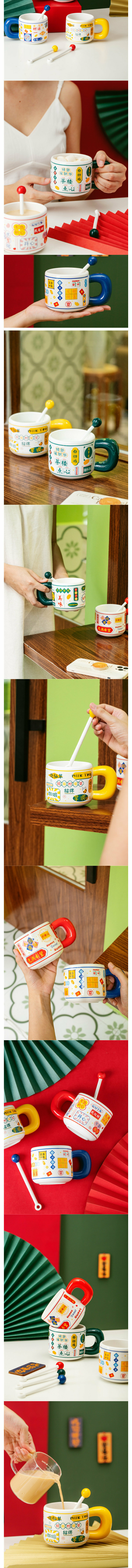 熱賣陶瓷馬克杯水杯(3378港風文字-藍色 380ml)