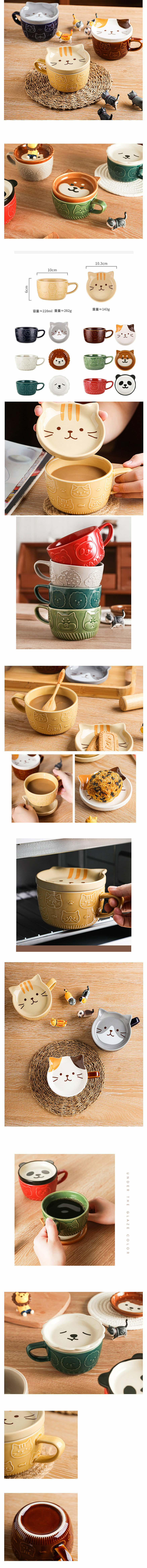 熱賣陶瓷馬克杯水杯(日式動物蓋杯-熊貓 220ml)