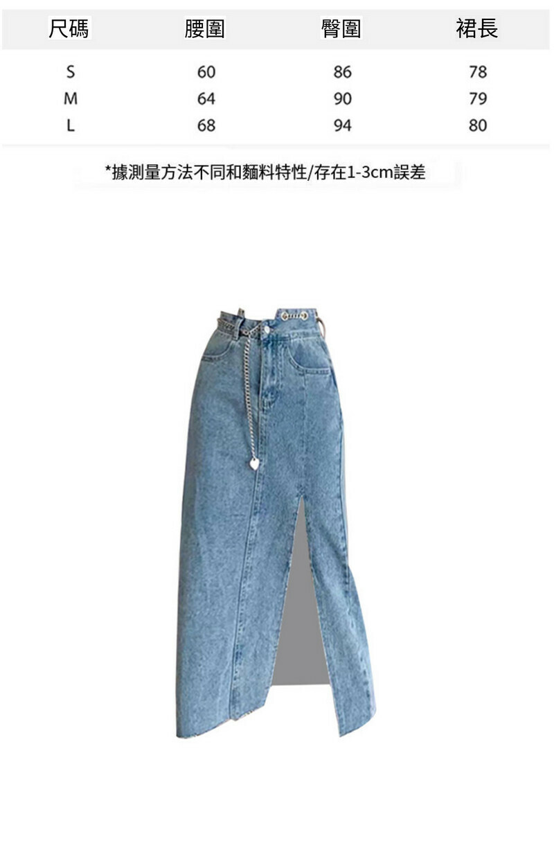 熱賣鏈條高開叉牛仔半身裙(藍色 S碼-L碼)(下單後請聯絡客服確認發貨尺碼)