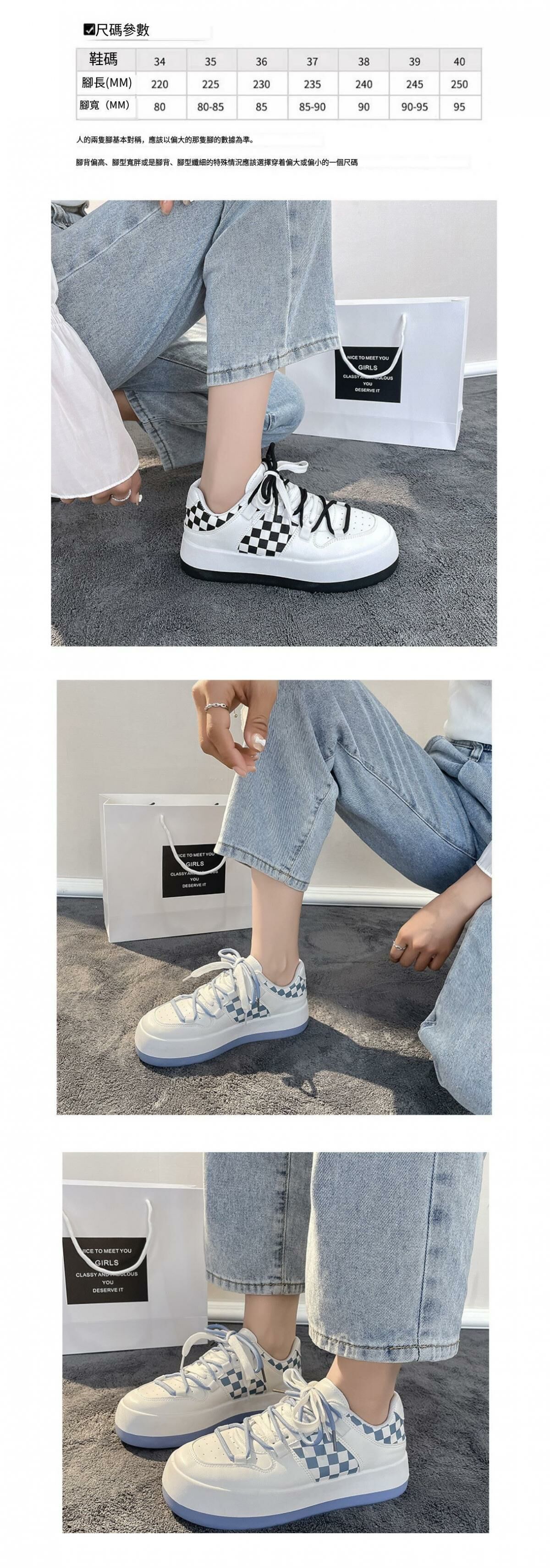 熱賣棋盤格子板鞋【藍色】【35-40碼】(下單後請聯絡客服確認發貨尺碼)