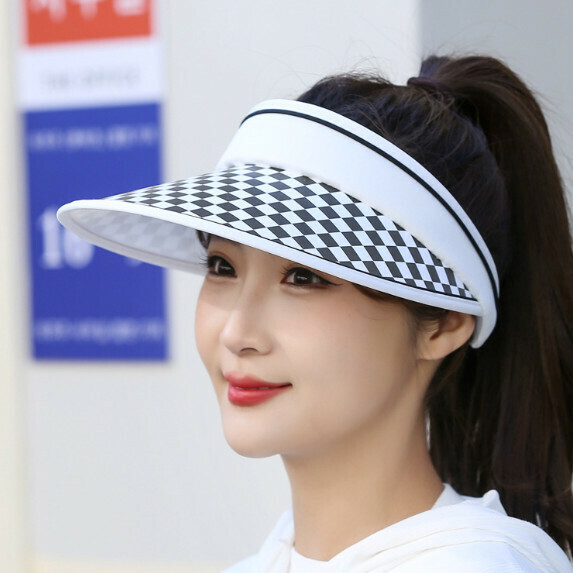 熱賣棋盤格無頂透氣防曬遮陽帽女(黑色)
