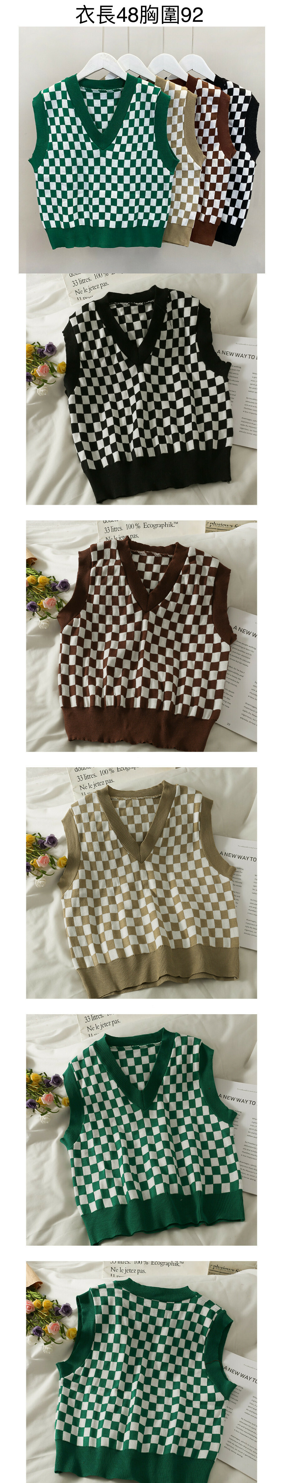 熱賣棋盤格馬甲背心女V領針織衫(黑色)(尺碼:均碼)