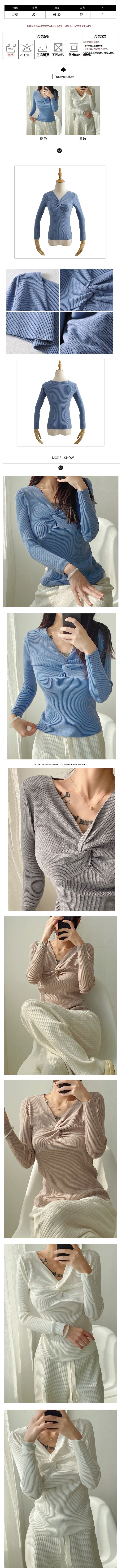 熱賣胸口交叉扭結針織衫(藍色)(均碼)