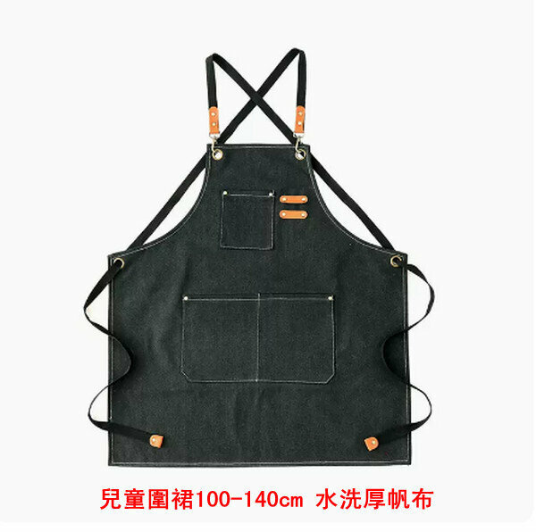 熱賣兒童圍裙100-140cm 水洗厚帆布交叉-黑