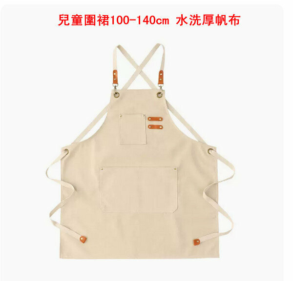 熱賣兒童圍裙100-140cm 水洗厚帆布交叉-淺米