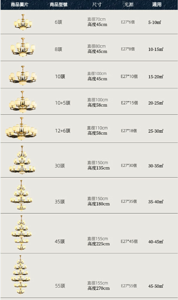熱賣中式吊燈(全銅10頭)【LED三色變光】