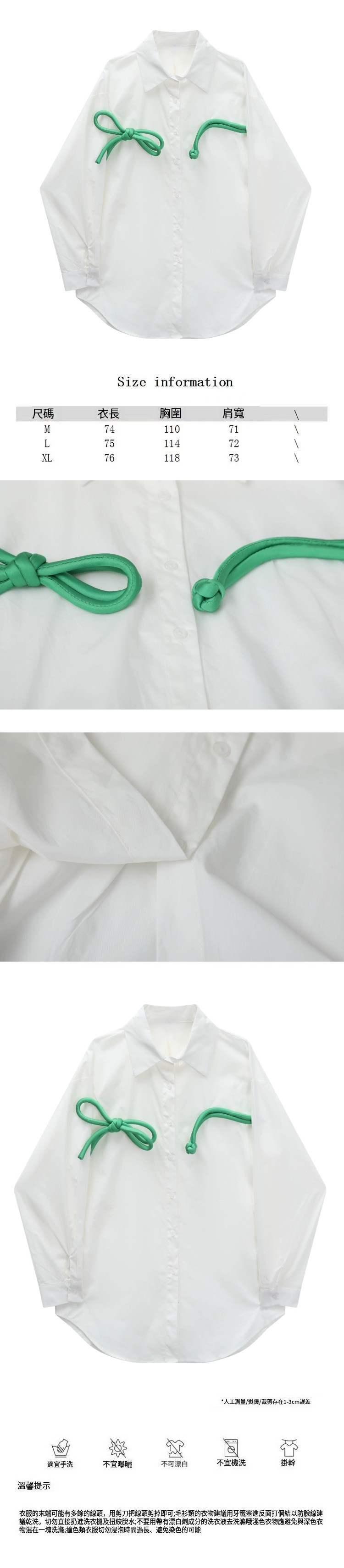 熱賣中國結撞色白色襯衫(白色)(SX-L碼)(下單後聯絡客服確認發貨尺碼)
