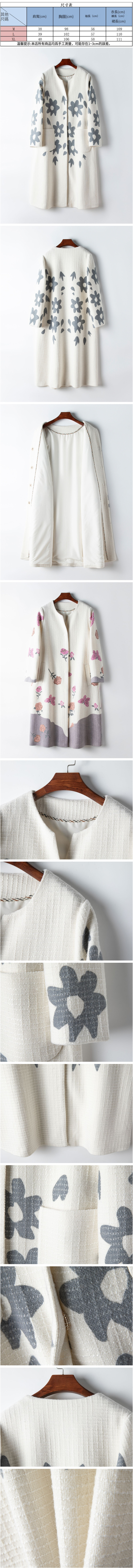 熱賣中國風羊毛混紡大衣(S-L碼)(白色紅印花)(下單後聯絡客服確認發貨尺碼)