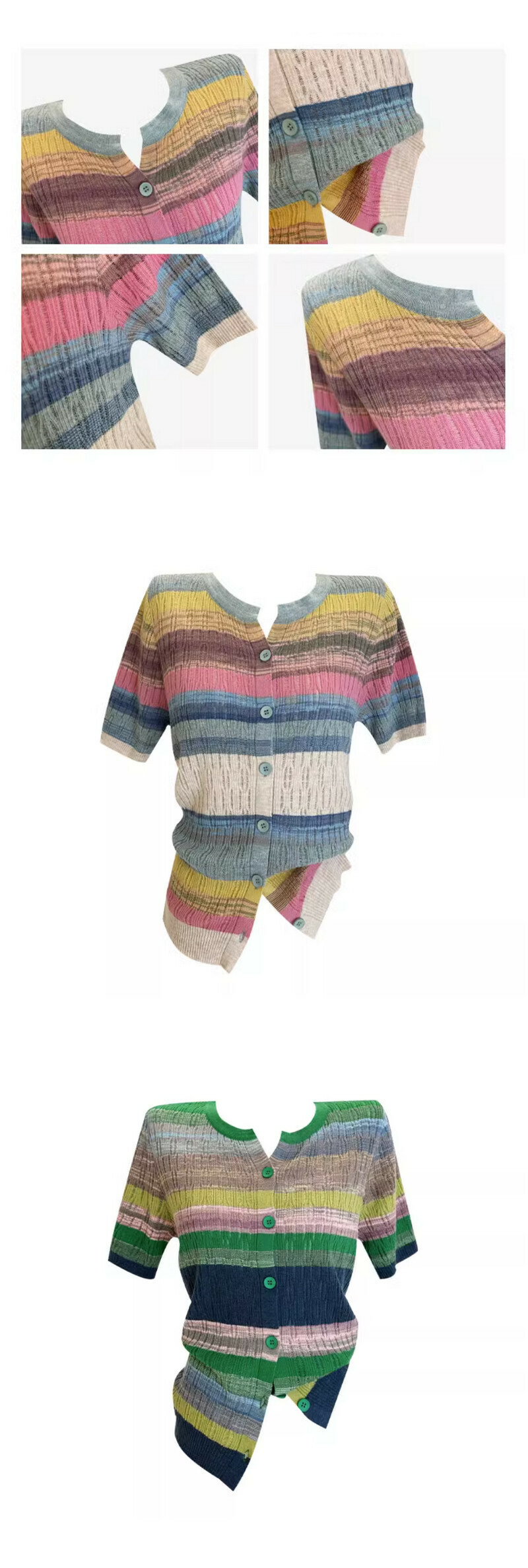 熱賣拼色條紋開衫T恤(藍色 均碼)