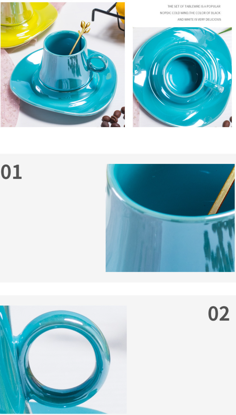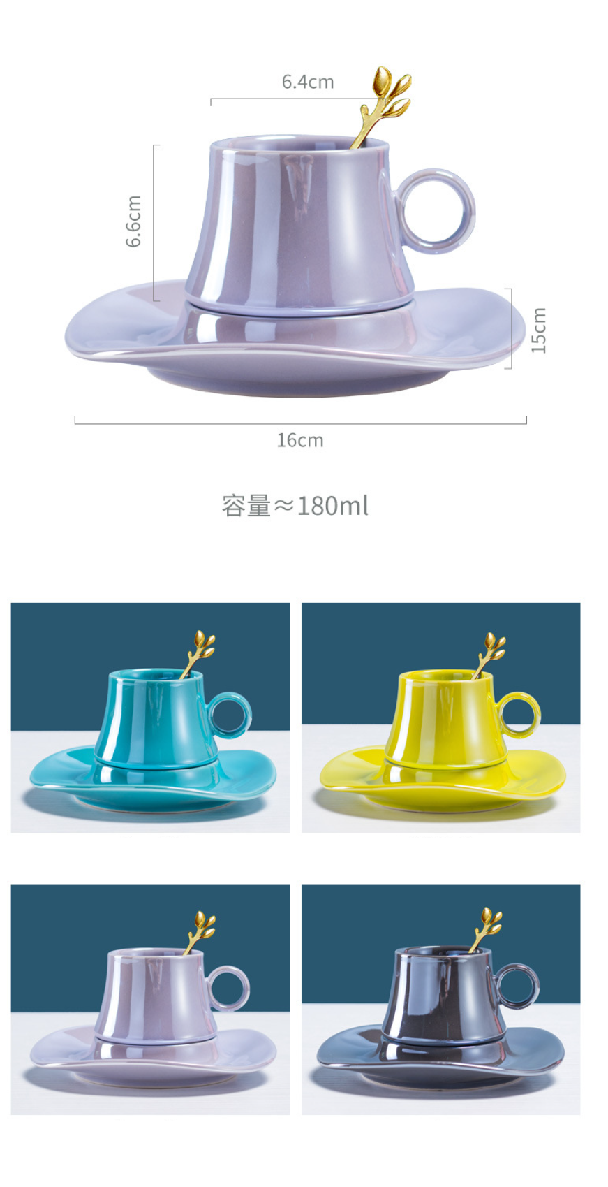 熱賣幻彩荷葉陶瓷咖啡杯 茶具杯碟套裝(檸檬黃)