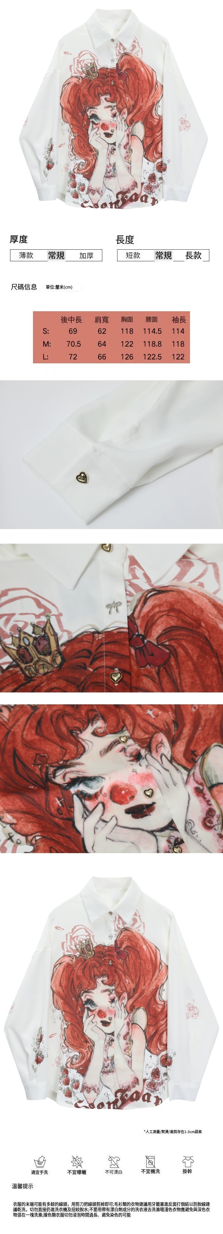 熱賣漫畫長袖襯衫(白色)(S-L碼)(下單後聯絡客服確認發貨尺碼)